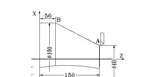 在车削加工的数控程序中,X轴的坐标值取为零件图样上的直径值,如图2.1.2所示:图中A点的坐标值为(30,80),B点的坐标值为(40,60)。采用直径尺寸编程与零件图样中的尺寸标注一致,这样可避免尺寸换算过程中可能造成的错误,给编程带来很大方便。